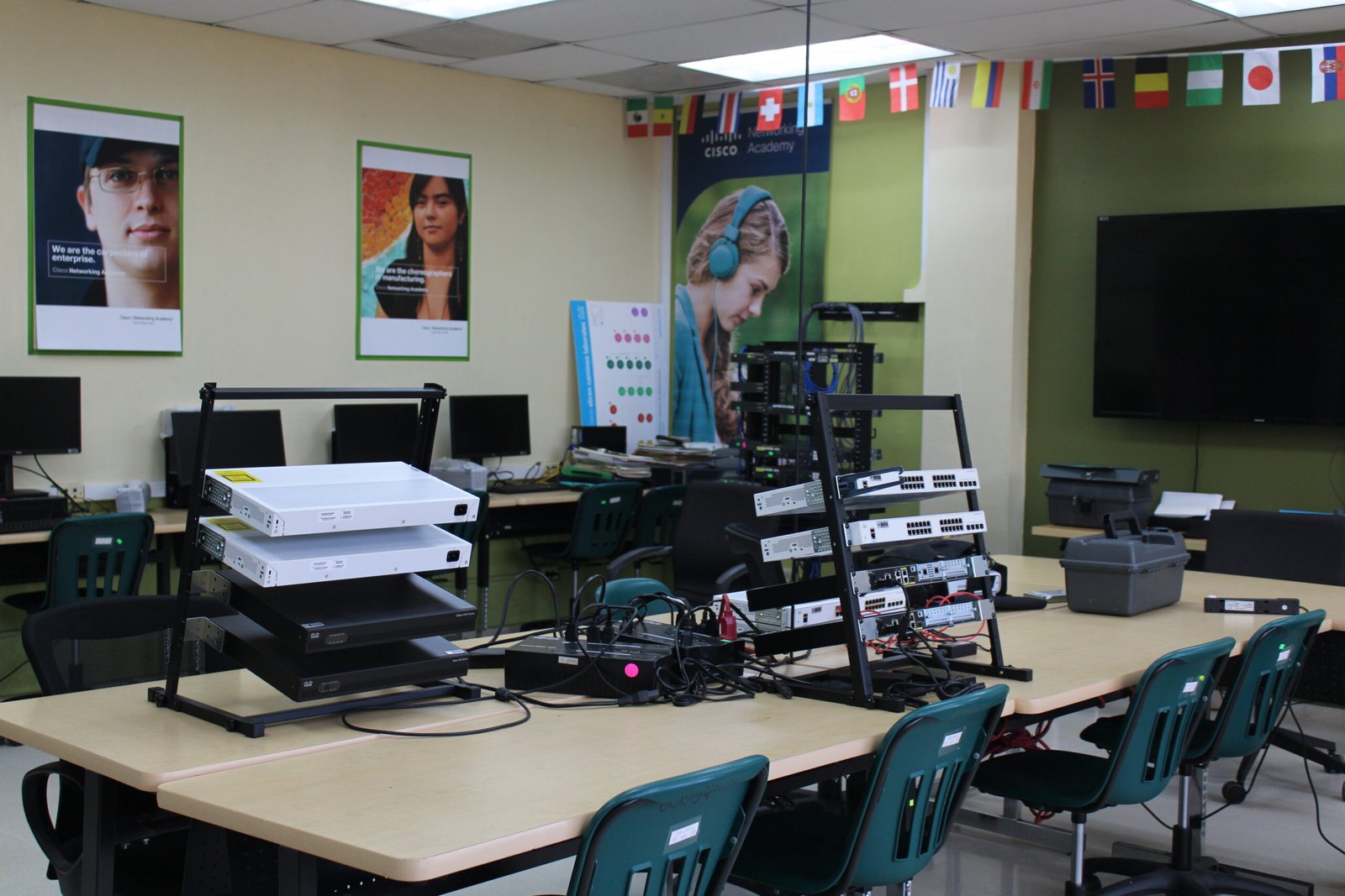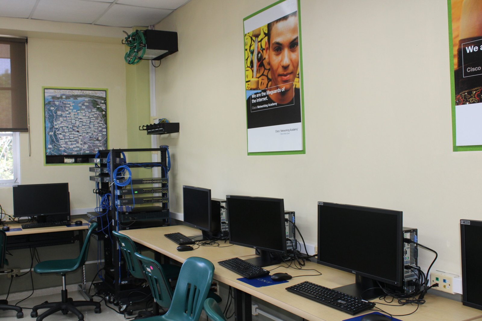 En nuestra academia, la innovación se refleja en cada rincón. Contamos con instalaciones de vanguardia y laboratorios diseñados para ofrecer un aprendizaje práctico y adaptado a las demandas del mercado actual. Nuestros espacios van desde pasillos inspiradores hasta salones modernos y áreas especializadas con racks de switches y routers, están pensados para empoderar a estudiantes y profesionales, impulsando la excelencia académica y la inclusión tecnológica.
